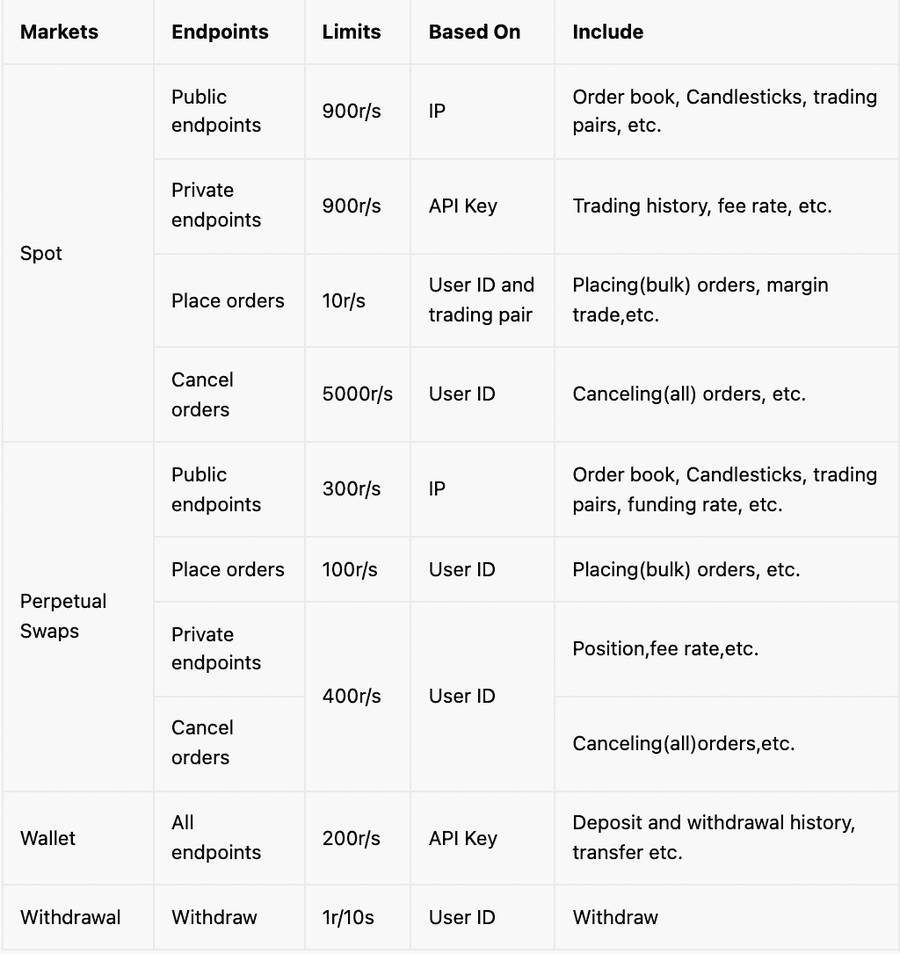 •APIv2 keys are only permitted to conduct spot trading while APIv4 keys are granted full access to spot trading, margin trading, and contract trading.